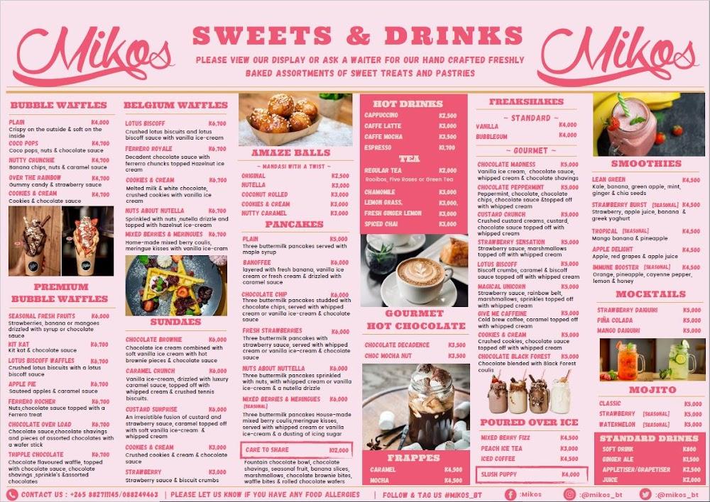 Located at Shop # 4, Salim Armour in Sharma Square, Mikos stands out as a vibrant spot in the local dining scene of Malawi. Its cozy and trendy atmosphere welcomes everyone—from families to tourists. This restaurant offers an impressive range of amenities, including outdoor seating, gender-neutral toilets, and free parking, making it a convenient choice for all. Reservations are accepted, allowing for a smoother experience during peak times. Mikos radiates a relaxed vibe, encouraging patrons to linger over meals. The café also boasts a delightful children’s menu and high chairs for families bringing little ones along. Friendly staff are known for their excellent service, ensuring that your experience is memorable from start to finish. Regulars and newcomers alike often remark on the charming decor and inviting atmosphere that makes everyone feel at home.